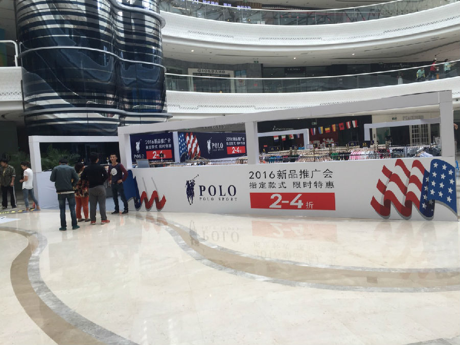 丹东万达百货秋季新品活动展板吊旗 喷绘布安装 吊眉 安装制作 展板 制作安装